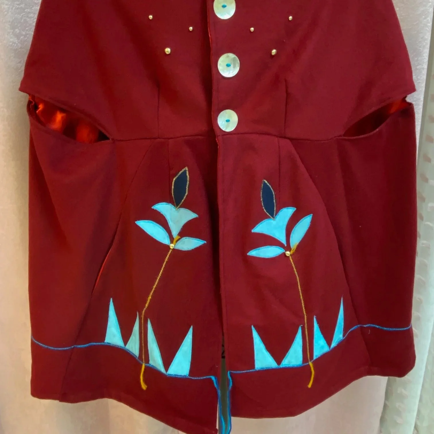 My name is Sage Mountainflower. I am a Beadwork Artist and Fashion Designer. I am from Ohkay Owingeh, Taos Pueblo, and the Navajo Nation. I began this endeavor as a mother creating traditional and contemporary attire for my children. As a young girl, I learned to do beadwork by observing my mom and my aunties when they used to visit with each other and work on their projects. I was later was gifted a sewing machine to assist in making a grass dance outfit for my son and where I began to teach myself how to sew. The breathe of my work represents who I am as native woman and my background as environmental scientist. My creations allow me to share their emergence by fusing my traditional ecological knowledge with western science in teaching people about our ancestral lands in program development and project work implemented in my work in the environmental field and natural resources through my designs. My designs illustrate the relationship between the people and the natural world. I emerge the natural elements into my designs which creates my unique style.